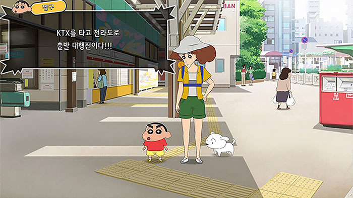 게임 초반의 스토리는 짱구 아빠의 출장에 맞춰서 짱구의 가족은 광주 오잉 마을에 가게 됩니다. 엄마의 오랜 친구네 집에서 일주일 동안 지내게 됩니다.