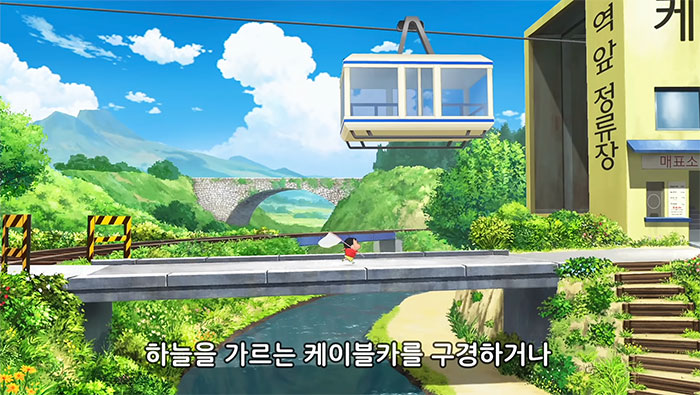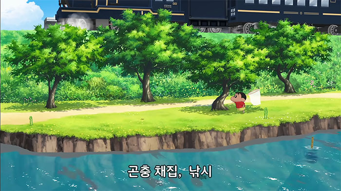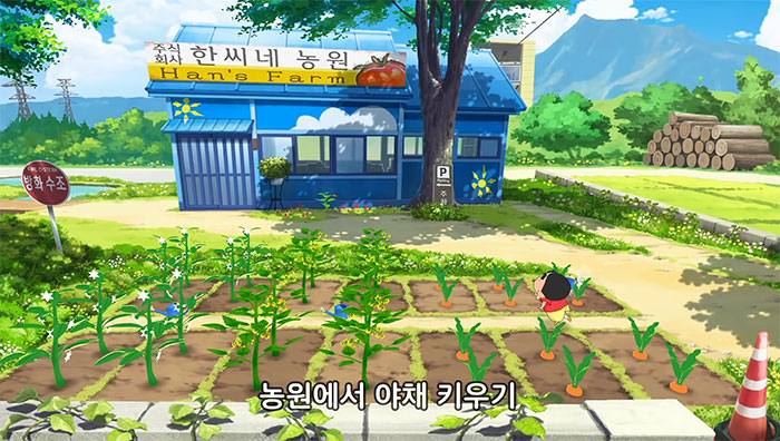 트레일러 영상을 보면서 가장 크게 와닿는 부분은 그림 같은 배경들입니다. 주변에 보이는 나무와 수풀, 그리고 흐르는 시냇물을 보면 매우 힐링되는 듯한 기분을 들게 합니다. 우리가 기억하는 시골의 모습과 닮아있습니다. 이곳을 뛰어다니는 짱구의 모습은 매우 귀엽습니다.